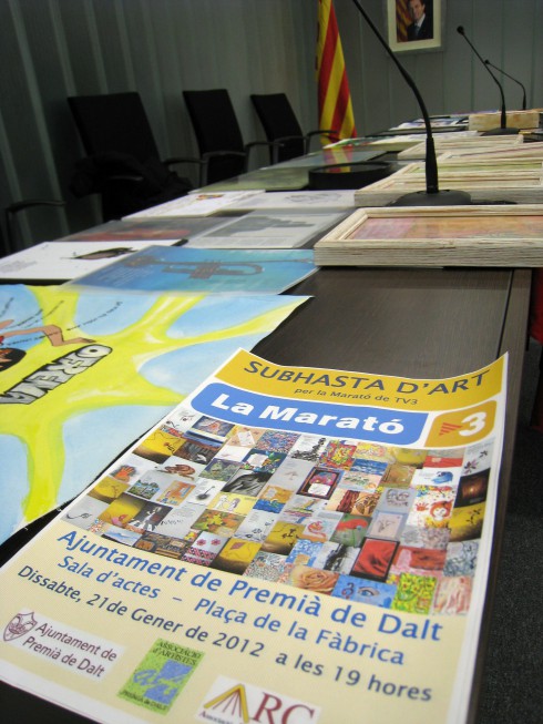 Les obres participants en la iniciativa ‘Poemes per a la MaratA?‘ que encara no havien estat adquirides van ser posades a la venda, la tarda del passat dissabte 21 de gener, en una subhasta que vaA� tenir lloc a la sala d’actes de l’Ajuntament de Premià de Dalt.